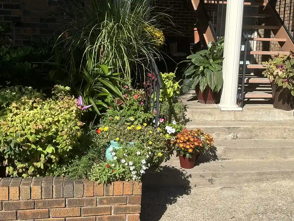 Their ever changing colorful mix of tropicals, annuals and perennials keeps 15927 Coolwood a must see for the community.
